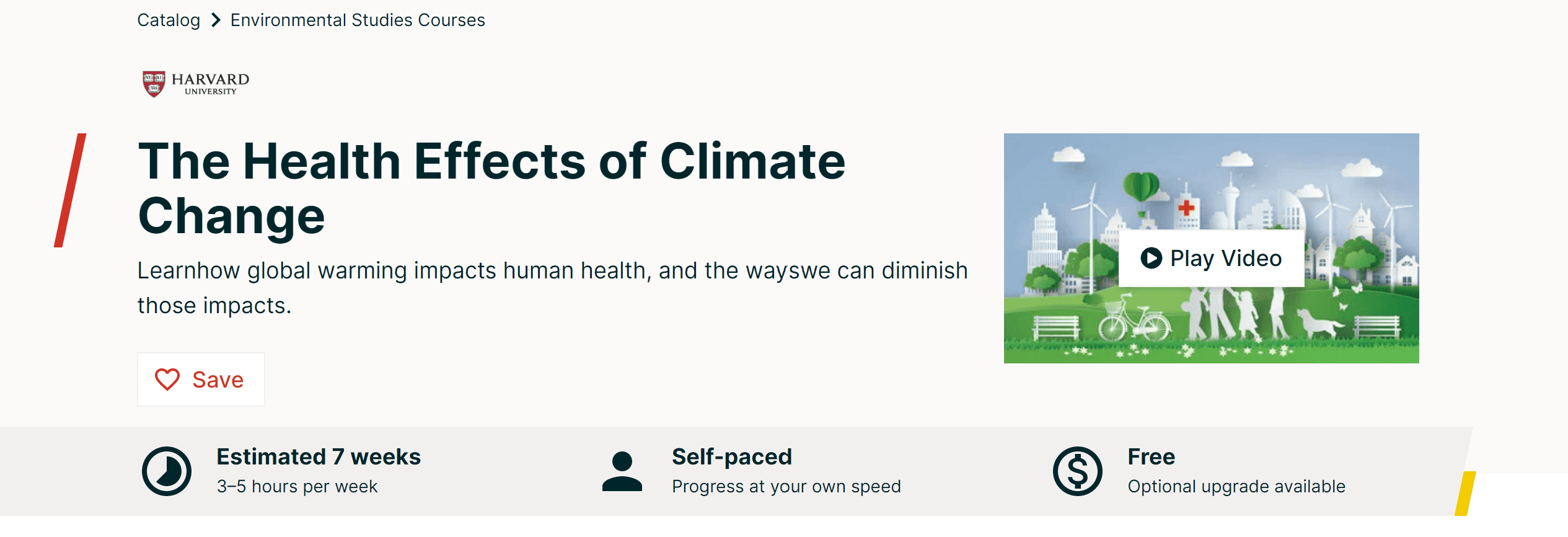 A call to action is not the goal of this course but rather an elegy to the planet. This course will teach you how climate change directly impacts and affects people worldwide. Although your risk increases with the rise of global temperatures, climate change is a solvable problem, and there are things you can do to mitigate the risk.